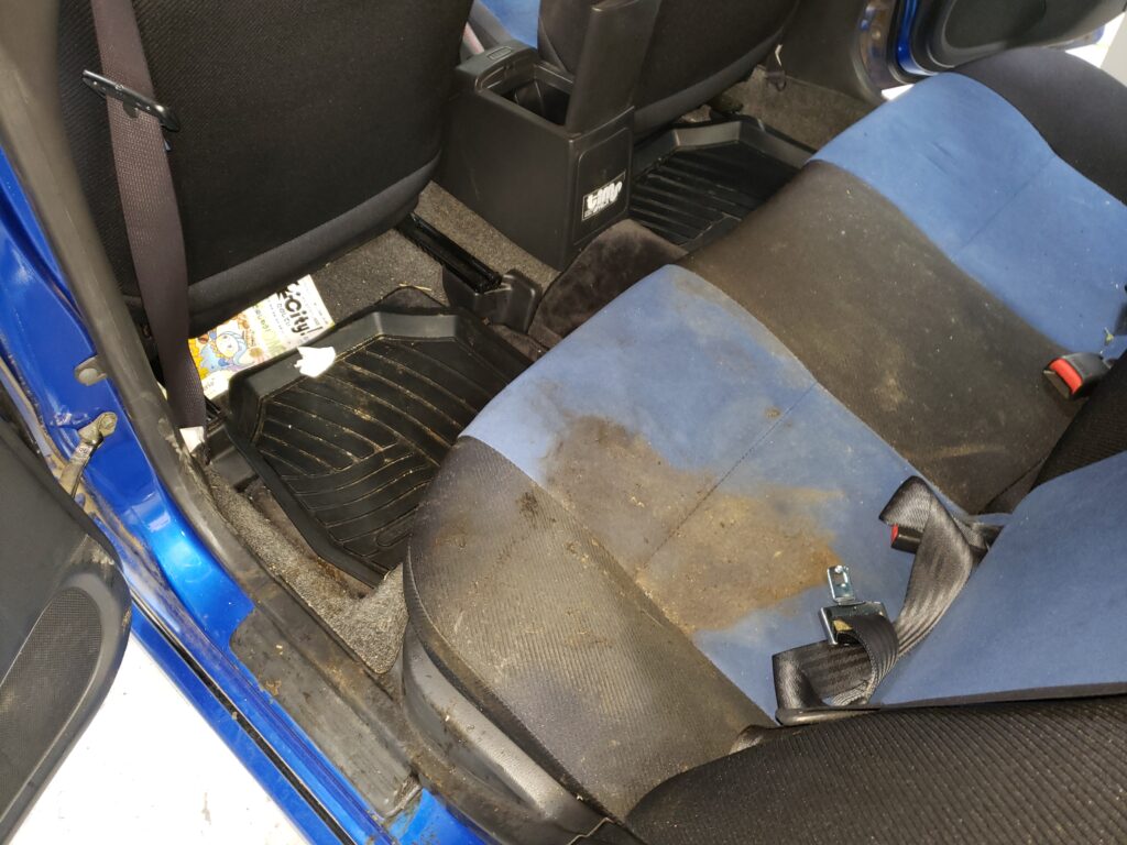 座席シート上の吐しゃ物は取り除けても、シートの奥に染み込んでしまっている液体の部分を取り除くのは一般的にはなかなか困難です。