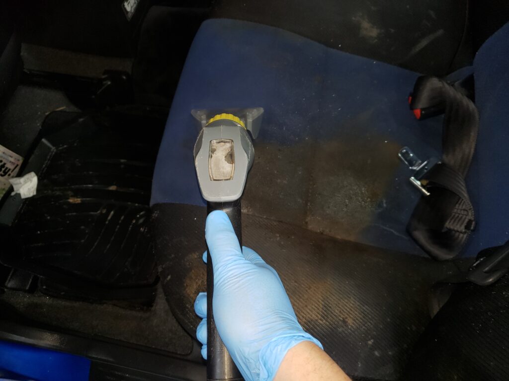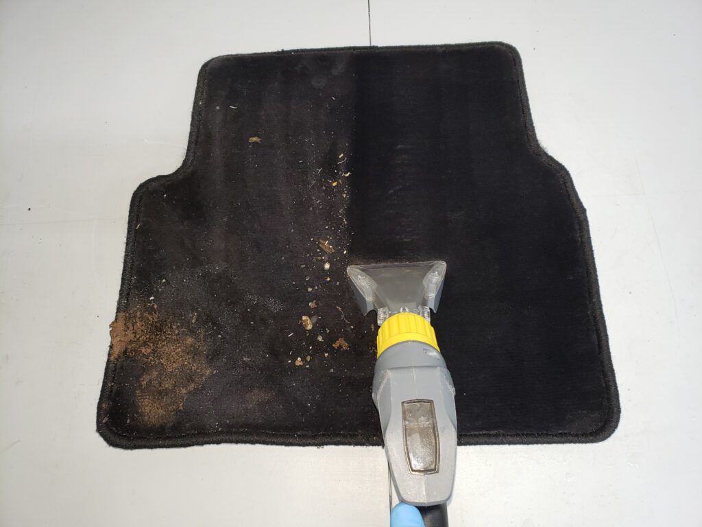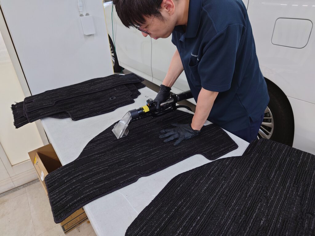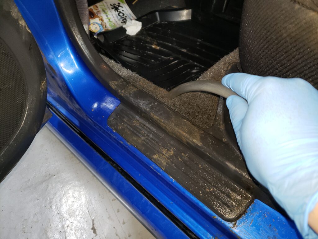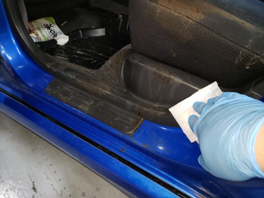 中には取り外したシートの下にまで嘔吐物が流れていることもありますので、細かな場所までしっかり確認しながら作業させて頂いております。