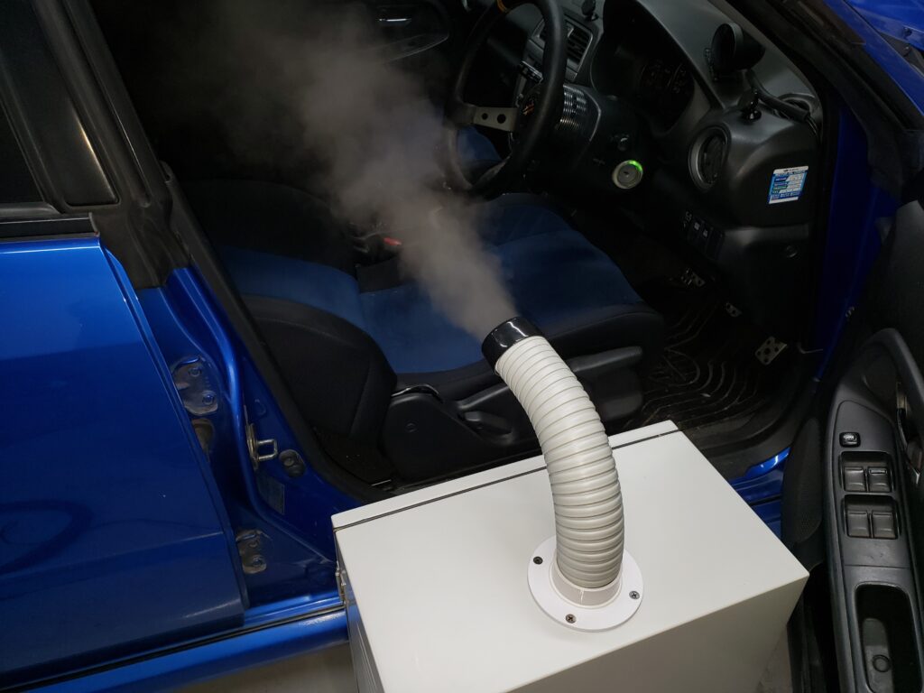 脱臭作業は、化学反応を起こすことで臭い成分を中和・酸化させる「化学的消臭法」と、臭いの元となるバクテリアの繁殖を抑制・分解する「生物的消臭法」の2つの方法があり、お車の状況に合わせて選別して作業させて頂きます。