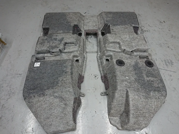 大雨の影響で雨水が車内に侵入してしまい、水浸しになってしまった車両です。この場合一番の心配事が、フロアカーペット(フロアマットの下の床部分)の状況です。