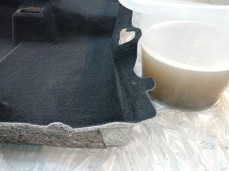 座席とフロアカーペットを外したところ、ぐっしょりと濡れていました。